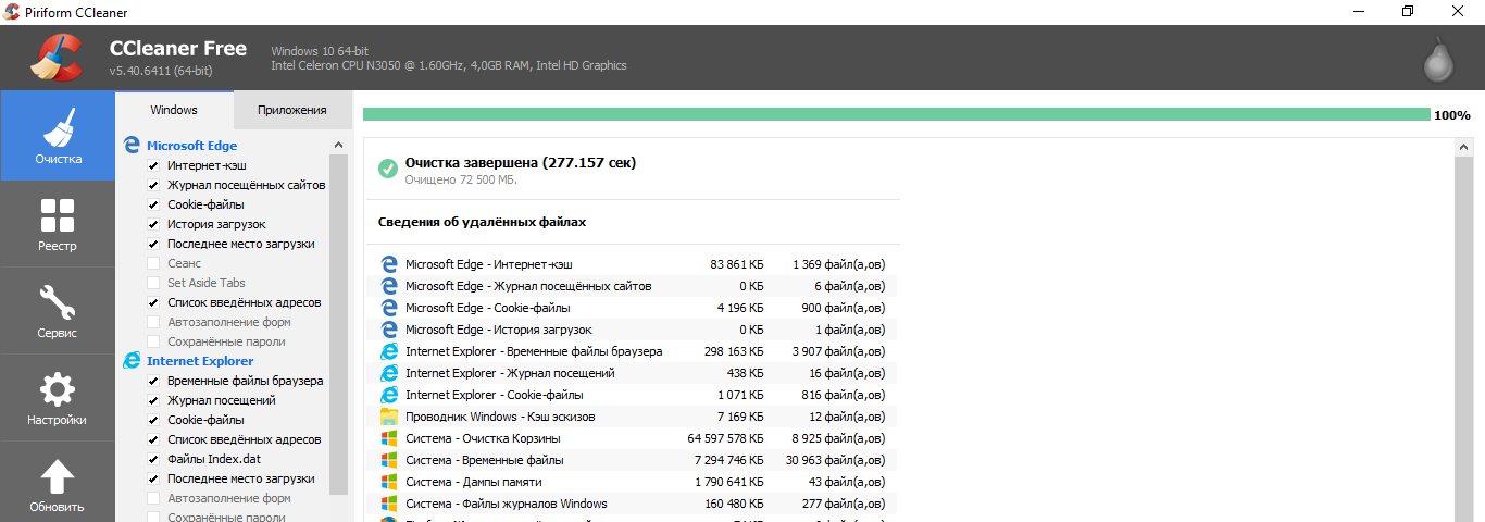 3) Здесь по ходу процесса очистки будет появляться информация о выполняемых операциях и отчет по работе программы.