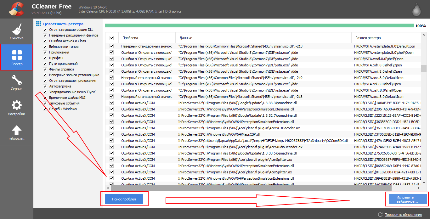 После того как мы провели чистку компьютера от ненужного софта пора переходить к чистке от мусора и восстанавливать целостность реестра.