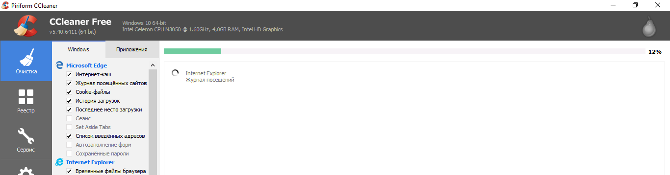 - Запустится очистка, которая может занять некоторое время (ее прогресс будет отображаться в зеленой строке в верхней части окна);