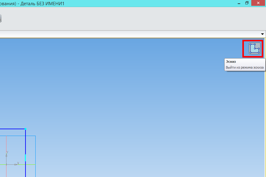 Теперь можно выйти из режима эскиза. Для этого либо снова кликните на кнопку эскиза на панели Текущее состояние, либо на значок режима эскиза в правом верхнем углу рабочего поля модели.