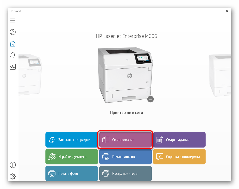 Запустить сканирование можно и при помощи специально отведенной кнопки на самом устройстве, а в случае отсутствия программы ничего не помешает взаимодействовать со стандартным инструментом операционной системы, что происходит так: