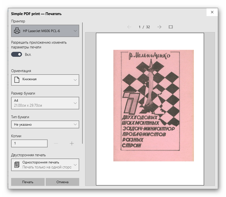 Для документов доступна функция «Двусторонняя печать», позволяющая автоматизировать печать на двух сторонах листа A4.
