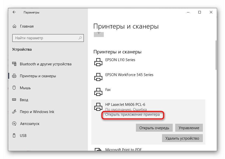 - Теперь можете произвести подключение оргтехники к ПК и подождать, пока устройство «схватит» ранее установленный драйвер.