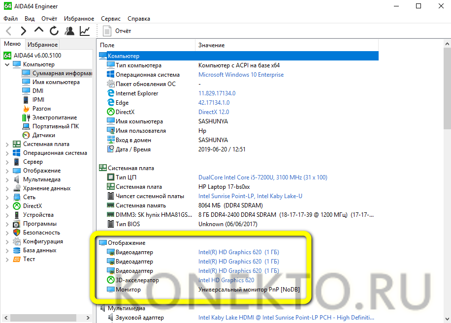 Чтобы узнать с помощью AIDA64, какая видеокарта установлена на компе, нужно: