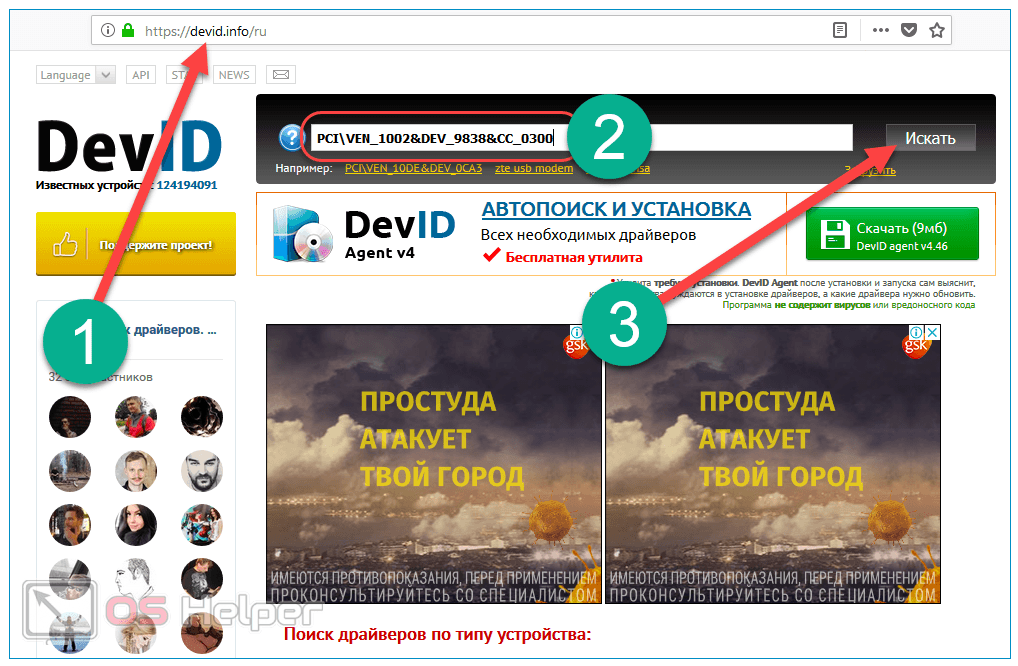 Данный онлайн-метод во многом отличается от всех ранее разобранных и будет работать на всех версиях Windows. Его особенность состоит в том, что данные о видеоадаптере ищутся в Интернете посредством ввода ID устройства в специальном сервисе.