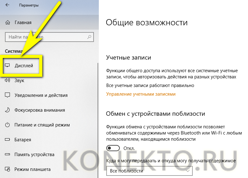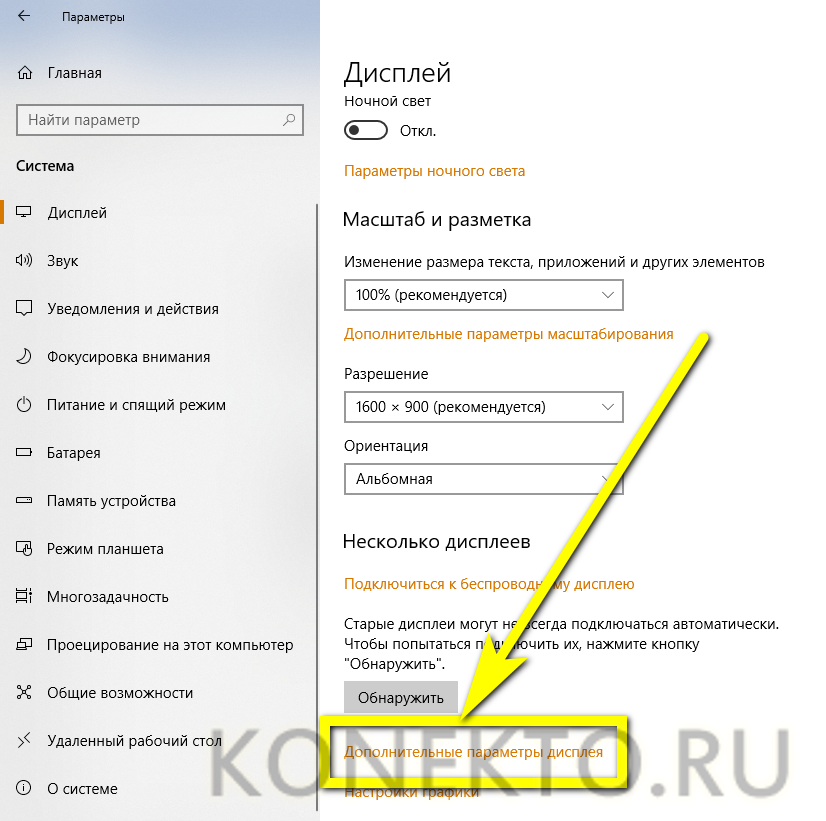 - Переходим на вкладку «Дисплей» и ищем «Дополнительные параметры дисплея».