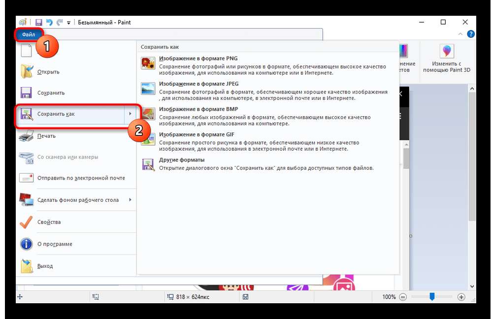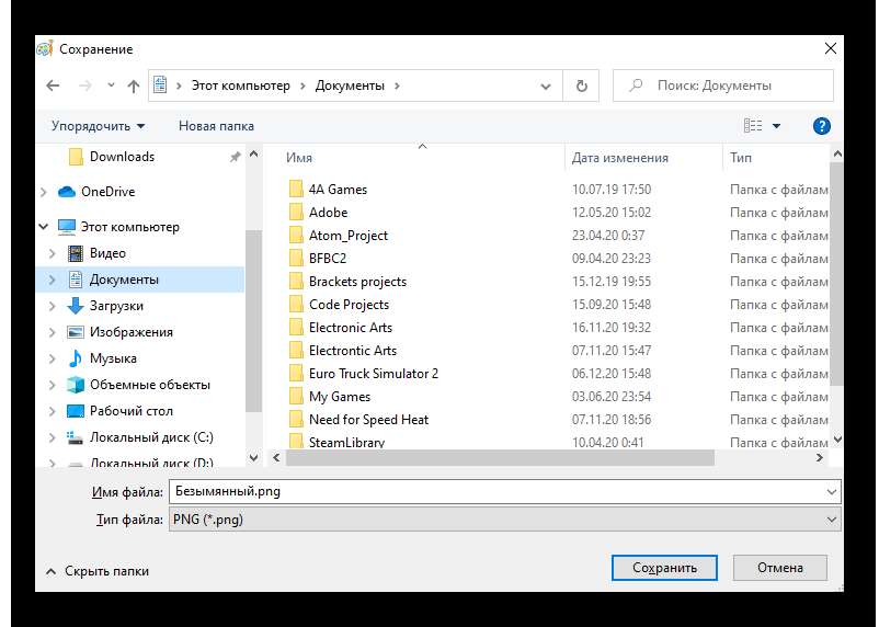 - Указываем папку для хранения файла, его формат (предпочтительнее сохранить в jpg или png, последний поддерживает прозрачность и слои), название и жмём «Сохранить».