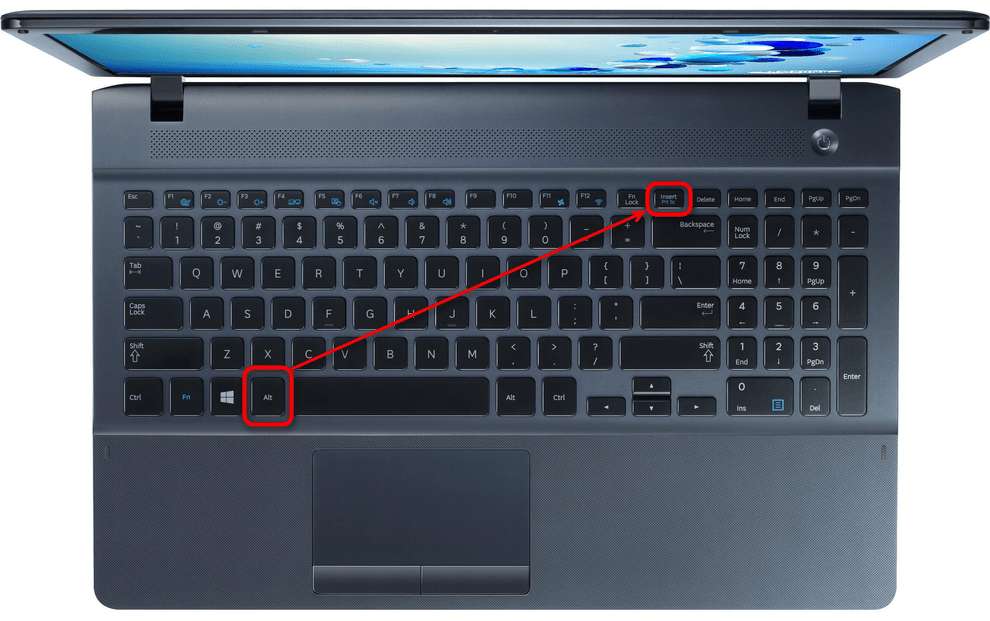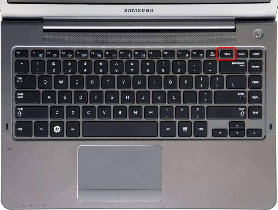 У старенькых ноутбуков Самсунг кнопка Print Screen именуется Prt Sc и размещена раздельно приблизительно так, как показано на последующей фото.