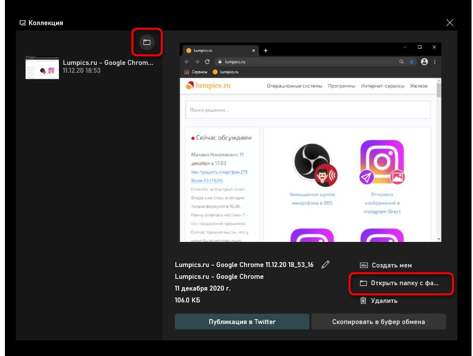 Здесь находится миниатюра самого скриншота, нажав на которую, вы можете открыть его в режиме галереи.