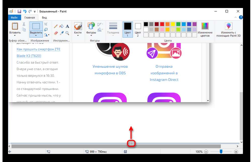 - Для вставки снимка экрана жмём Ctrl + V или кликаем по иконке «Вставить» в панели инструментов программы.