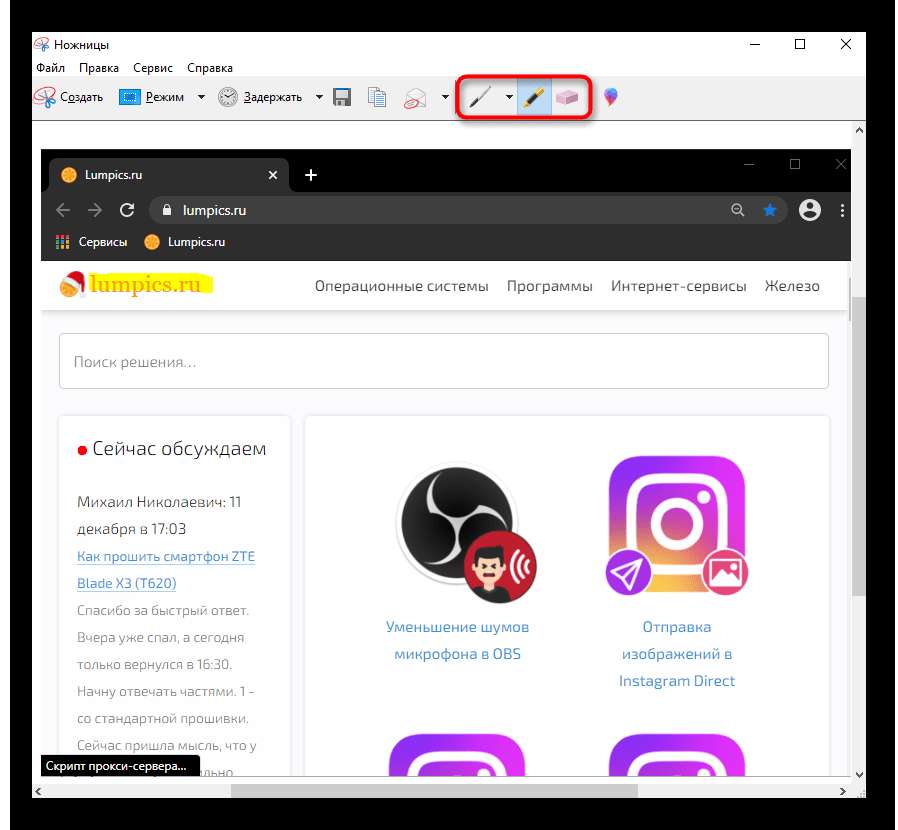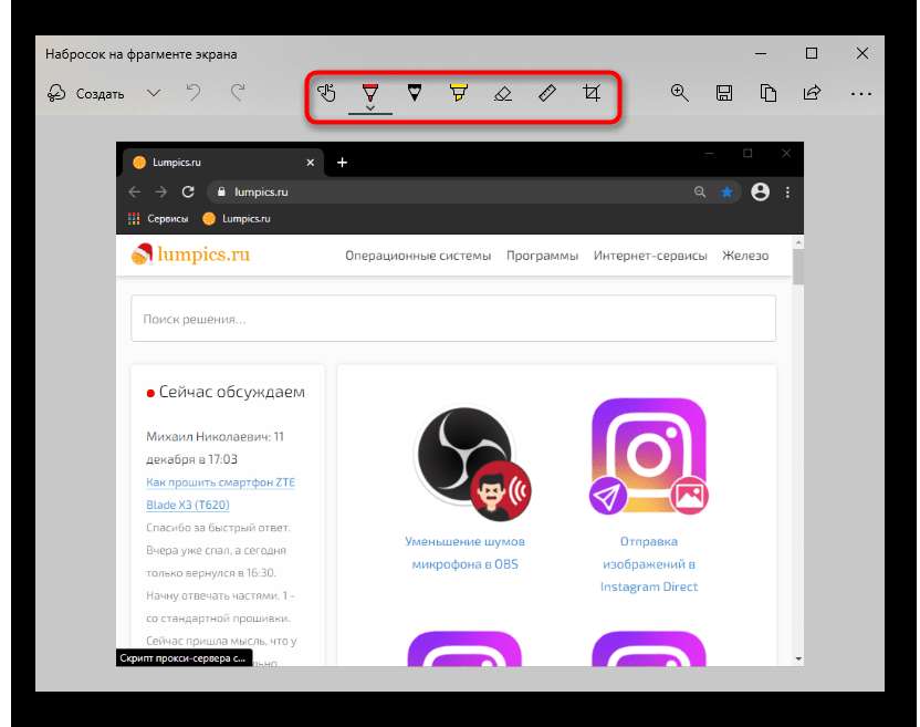 Инструмент «Набросок на куске экрана» (только Windows 10)
