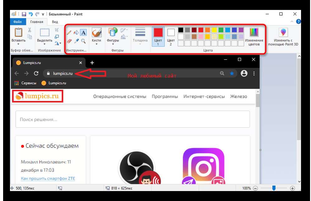 Когда изображение снимка экрана уже вставлено в программу Paint, вы можете средствами самой программы отредактировать это изображение, то есть вырезать нужный участок, написать текст, изменить цветовые настройки и др. Так же вместо Paint вы можете использовать и любой другой установленный графический редактор, такой как Photoshop или другой.