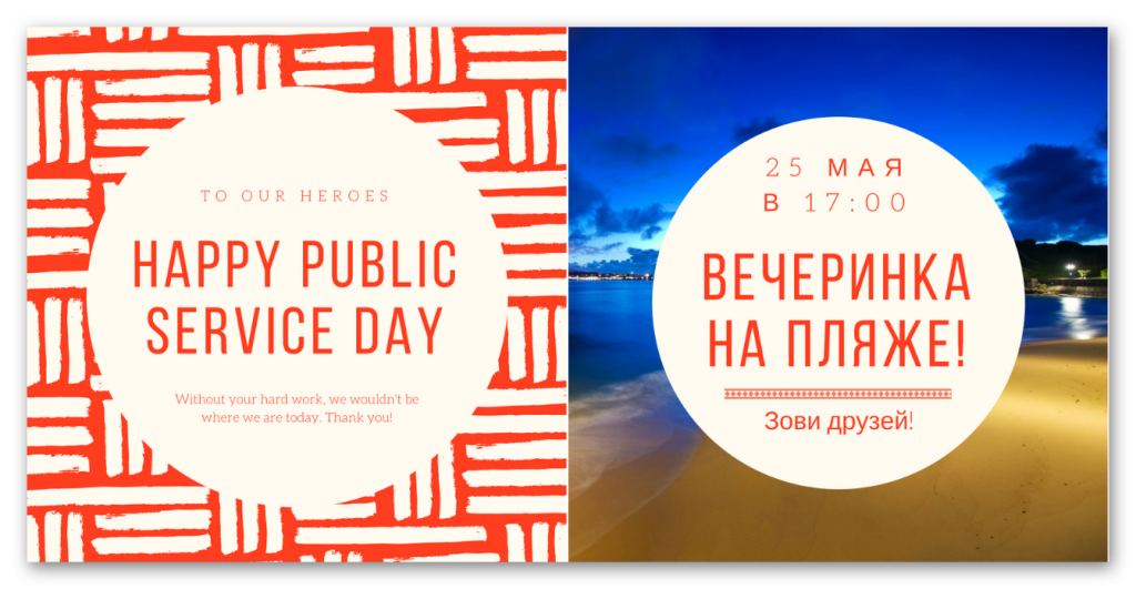 Все шаблоны распределены по категориям — для соцсетей, документов, блогов, рассылок, событий.