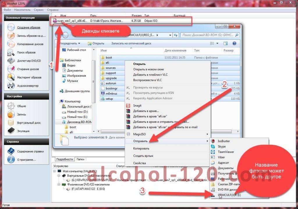 Для установки ОС все чаще используют не болванку а флэшку с записанной на нее системой. Операцию записи можно произвести и с помощью утилиты Alcohol 120%, но стоит сразу предупредить, что проще всего воспользоваться специальной утилитой – UltraIso.