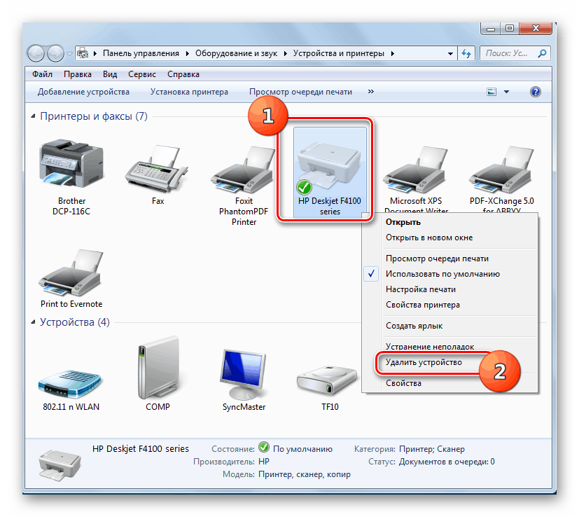 Процесс деинсталляции принтера с компьютера осуществляется путем очистки системы от его драйверов и связанного программного обеспечения. Сделать это можно, как при помощи сторонних программ, так и внутренними средствами Виндовс 7.