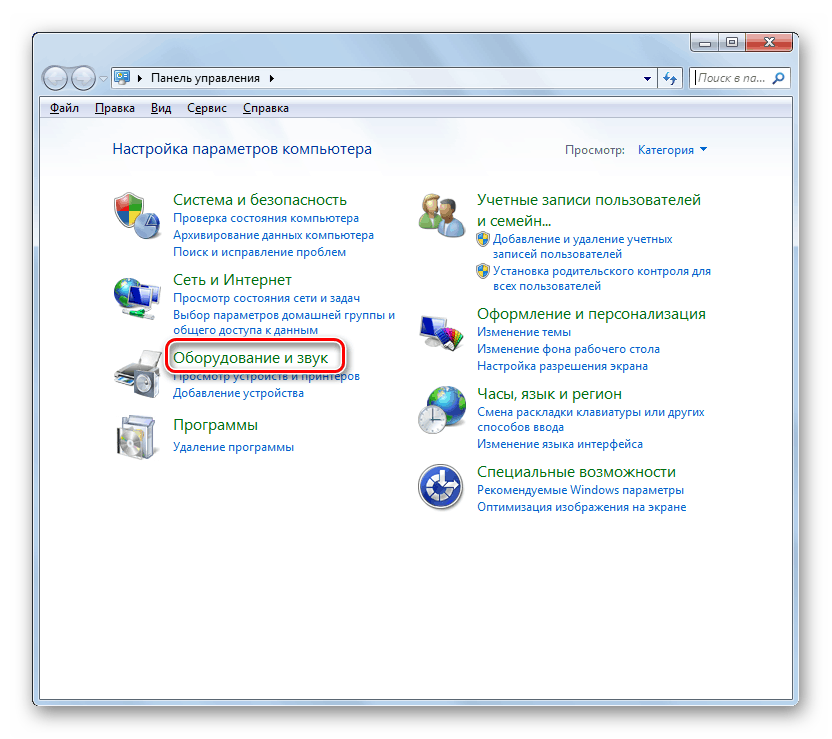 Откройте раздел «Оборудование и звук».