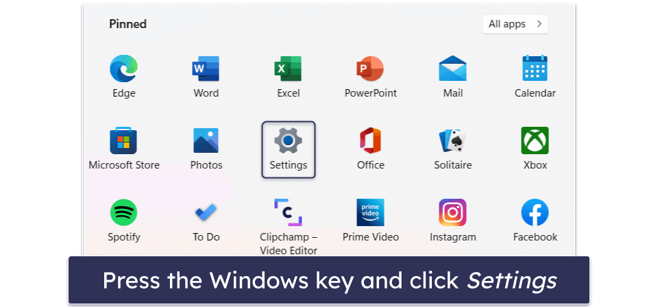 To remove Adaware Web Companion from Windows 11, click the “Windows” icon located on the taskbar. Then click on the “Settings” icon (the one with the gear symbol).