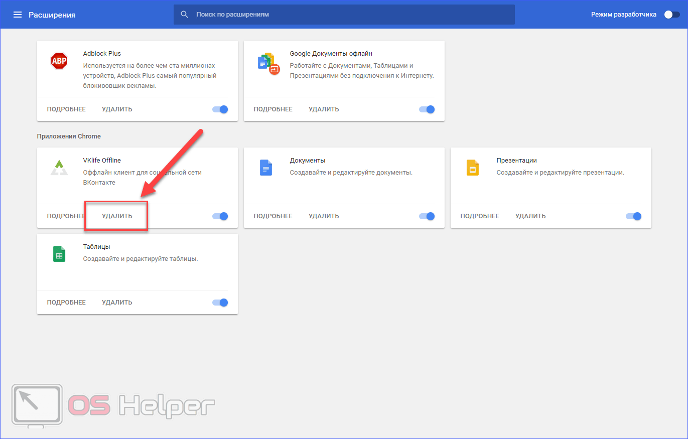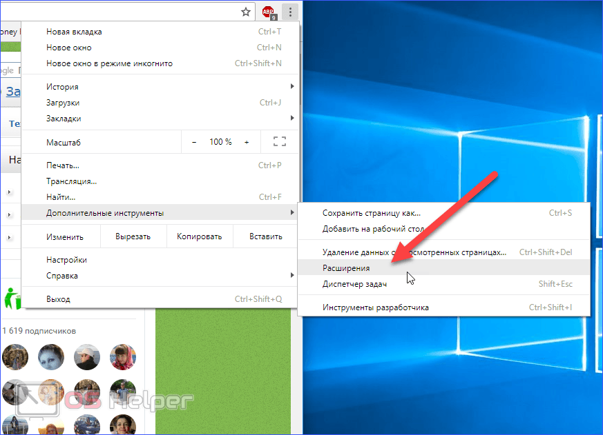 Второй шаг ручной очистки – это удаление расширений в браузере. Вам необходимо найти те плагины, которые установились автоматически без вашего участия. Рассмотрим процедуру на примере Google Chrome (по аналогии удаление можно выполнить в Опере, Яндекс Браузере, и Мозилле Фаерфокс):