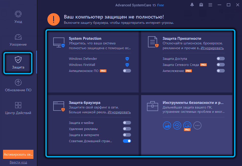 Основные возможности Advanced SystemCare