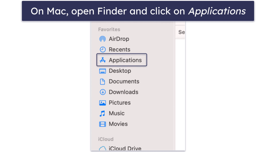 To remove Adaware Web Companion on a Mac, you have to access “Finder”. To do this from your desktop, click on the “Finder” icon on the Dock. In the window that appears, select “Applications.”