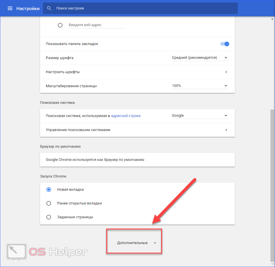 - Пролистайте страницу вниз и кликните на «Дополнительные».