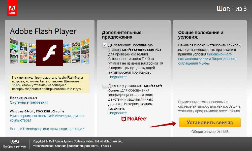 Чтобы скачать и установить флеш-плеер с официального сайта, нужно: