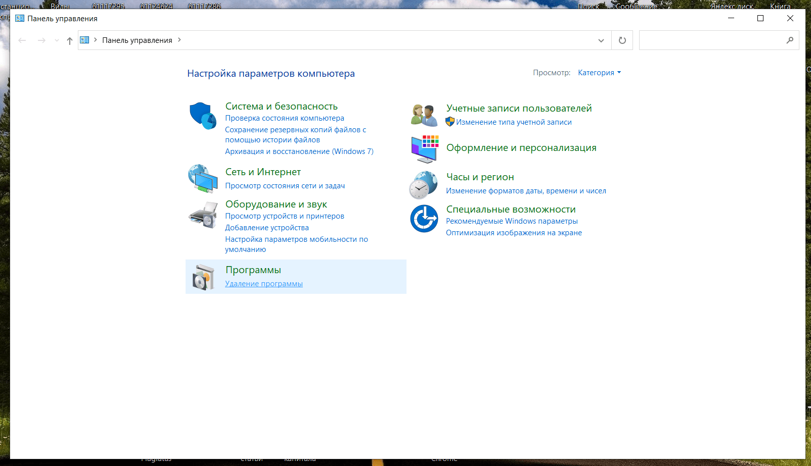 В открывшейся панели нажмите на «Удаление программы» (если такой нет, тогда «Программы и компоненты» или «Установка и удаление программ» , в зависимости от версии Windows).