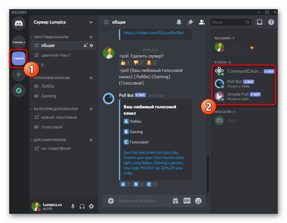 Discord не имеет возможности создания опросов и голосований, поэтому без подключения специального робота модератору понадобится большое количество времени, чтобы отсортировать все лишние сообщения и комментарии.