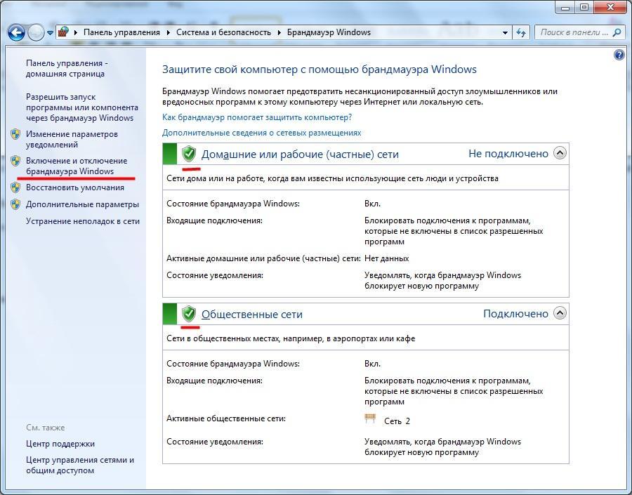 - Встроенное защитное программное обеспечение (Брандмауэр).