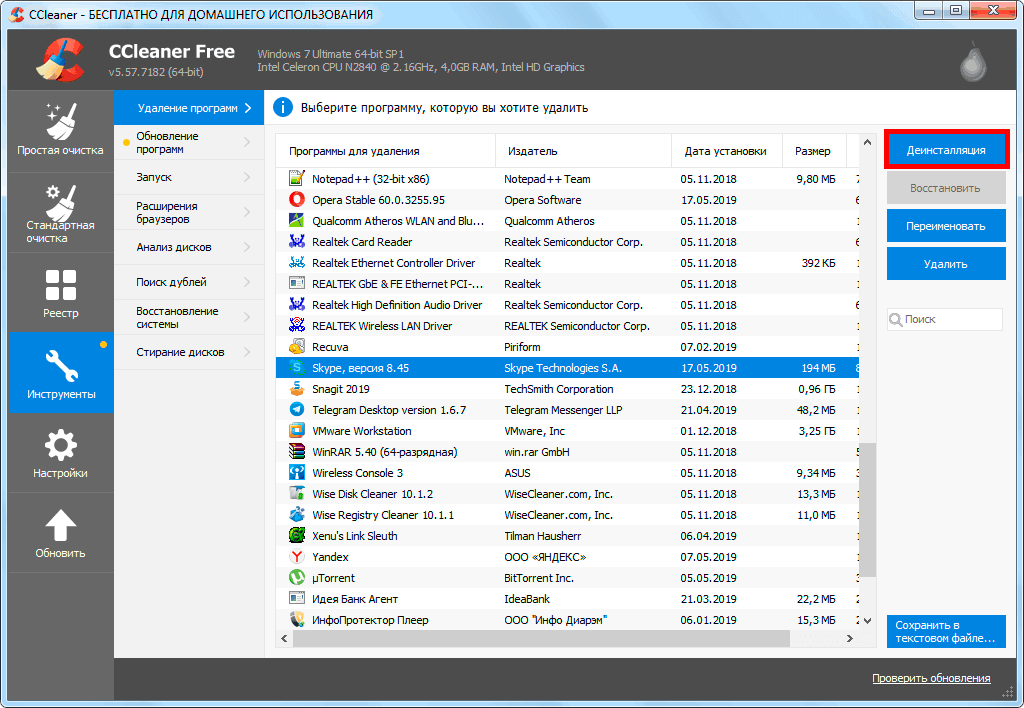Существуют специальные приложения, которые могут помочь вам удалить Skype, например, Revo Uninstaller Pro