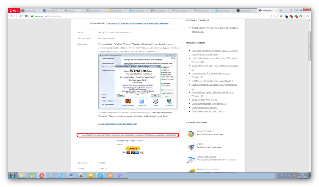 «Установка темы Windows 7 Home Basic и Windows 7 Starter». К сожалению, в этих редакциях операционных систем нет пункта «Персонализация». Кликнув правой кнопкой мыши по рабочему столу вы его не увидите. Но проблема решаема. Пригодится утилита Personalization Panel.