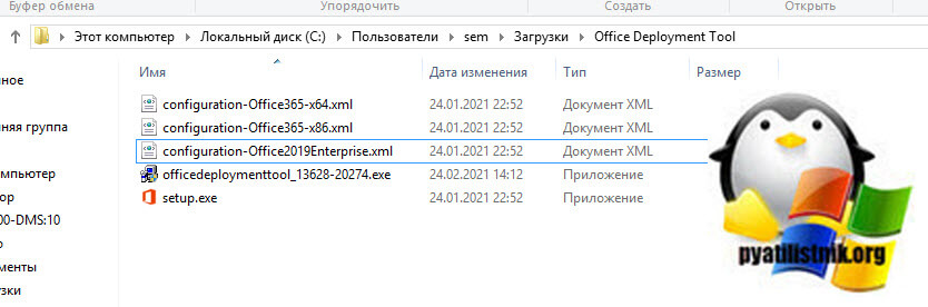 Для скачивания MS Office 2019 нам нужно будет отредактировать конфигурационный файл и воспользоваться файлом setup.exe.