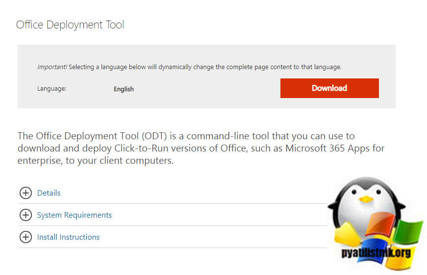 Средство развертывания Office (ODT) — это средство командной строки, которое можно использовать для загрузки и развертывания на клиентских компьютерах версий Office «Click-to-Run«, например приложений Microsoft 365 для предприятий или Office 2019.