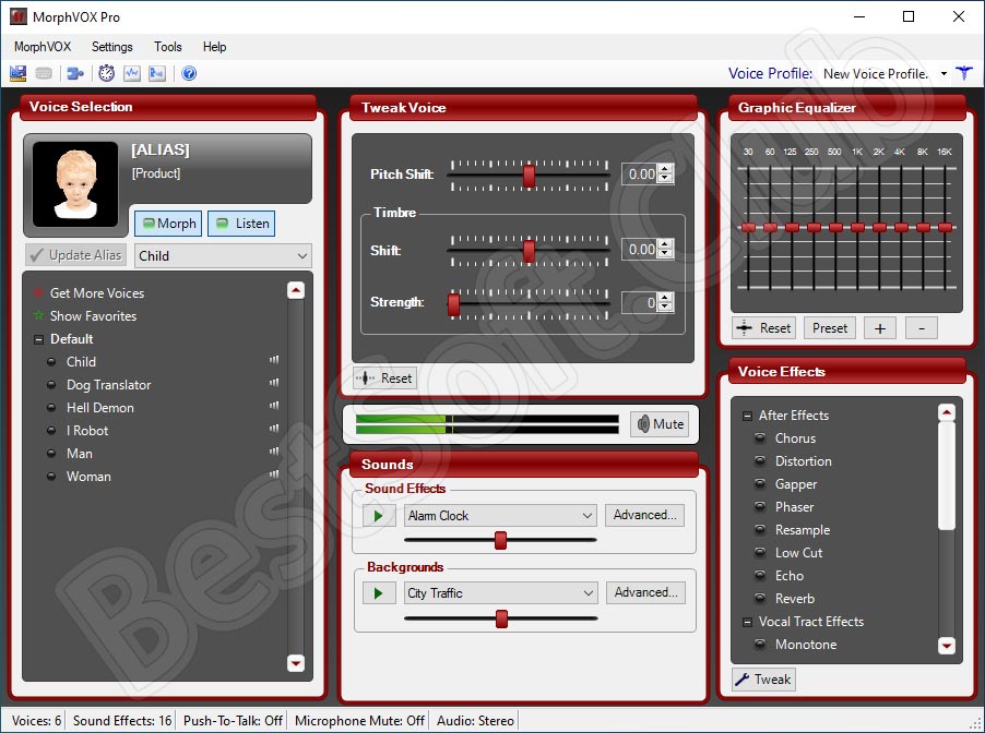 Вероятно, самая популярная и крутая программа для смены голоса. Здесь есть практически все, что нужно начинающему мистификатору. Утилита имеет набор из уже готовых голосов, среди которых адский демон, пришелец и ребенок.