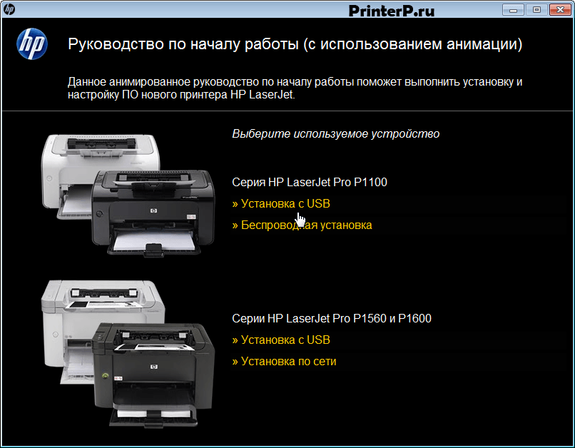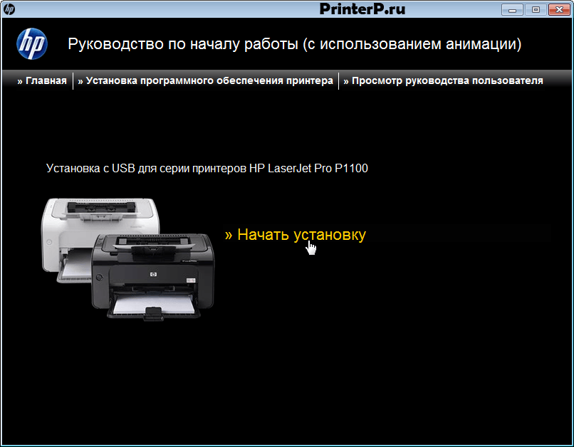 Начальное окно мастера установки принтера hp laserjet p1102