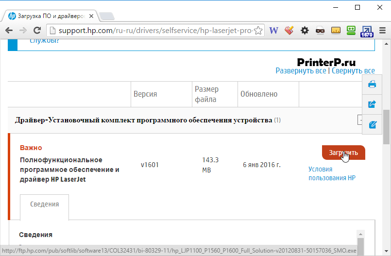Скачивание драйвера с официального сайта HP