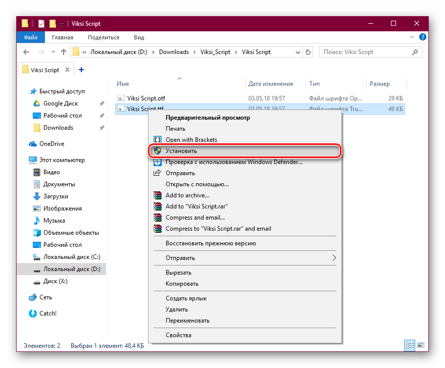 Неважно, какой из них выберете, результат будет один — список шрифтов в памяти компьютера пополнится