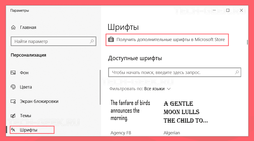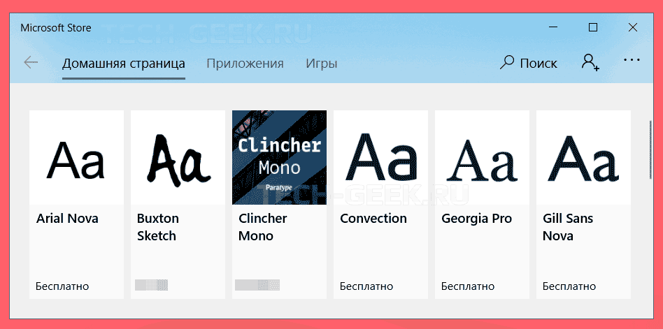 У Windows 10 имеется собственный магазин, содержащий в том числе и шрифты для системы.