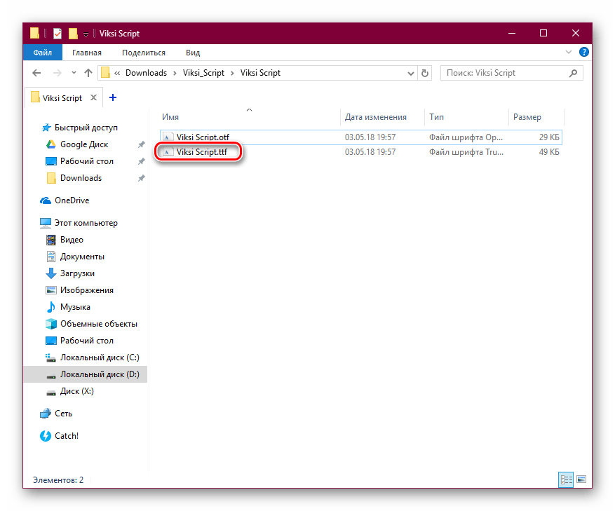 - Откройте папку со шрифтом и найдите в ней файл расширения .ttf.