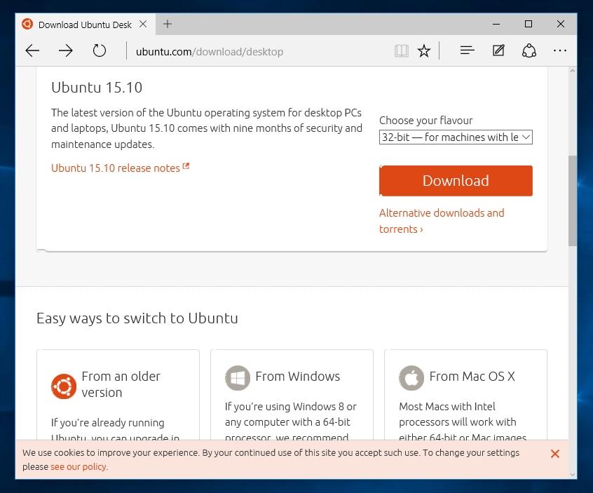 Вначале вы должны решить, для какой операционной системы создается виртуальная машина. Поэтому для начала подготовим образ ОС для инсталляции в нашу машину. Для примера мы возьмем образ бесплатной ОС Linux Ubuntu, который можно загрузить по адресу www.ubuntu.com/download/desktop. Выберем 32 битный образ Ubuntu и скачаем его на локальный диск ПК. Самым последним релизом Ubuntu является версия 15.10.