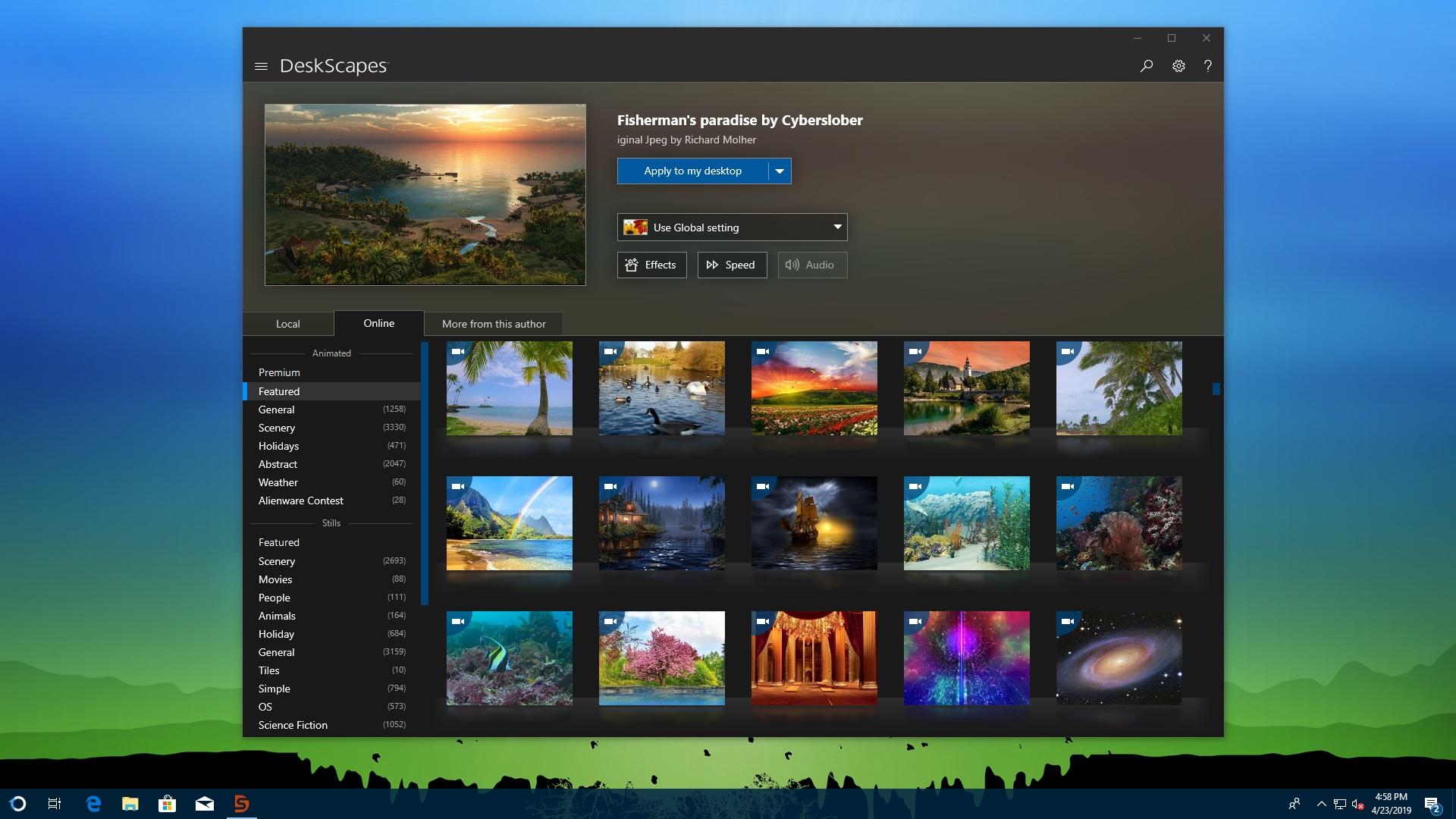 Или выберите В сети Вкладка, чтобы увидеть рабочие столы, которые DeskScapes включил из интернет-источников.