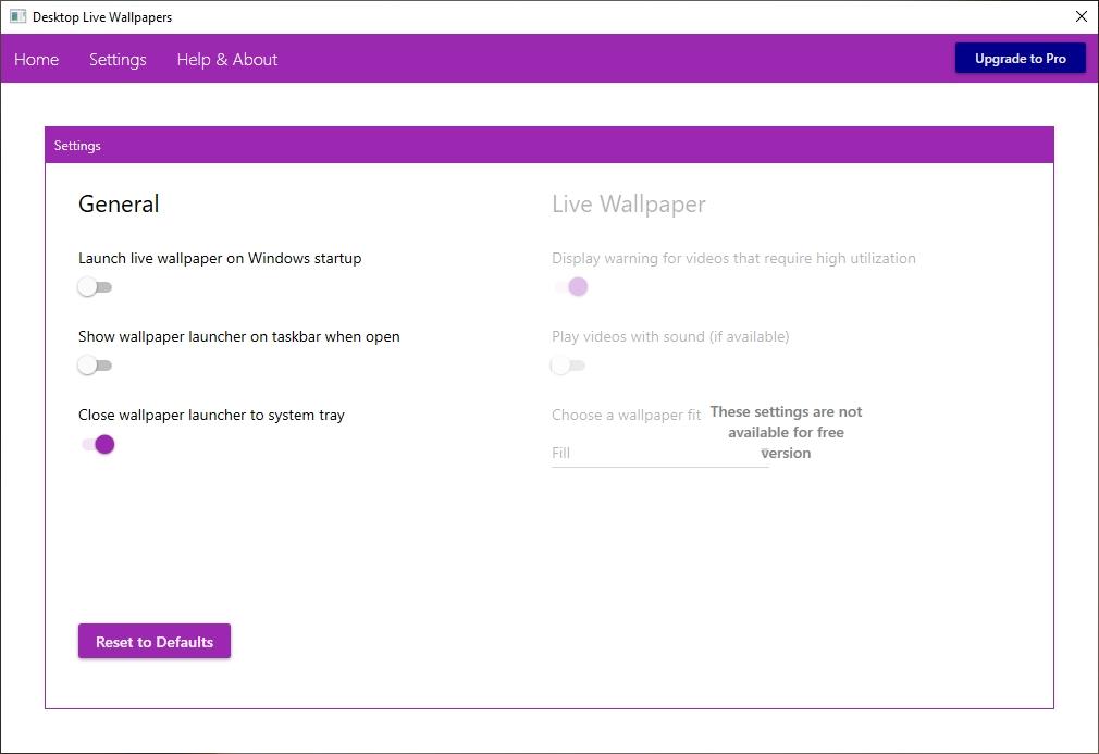 Приложение поддерживает до трех мониторов и будет воспроизводиться только тогда, когда вы используете этот конкретный рабочий стол. Это отличный способ сэкономить батарею и ресурсы системы. Имейте в виду, что в качестве живых обоев можно использовать только видеофайлы Windows Media Viewer (WMV). Если вы хотите использовать другие форматы видео, вам необходимо приобрести программное обеспечение Pro.