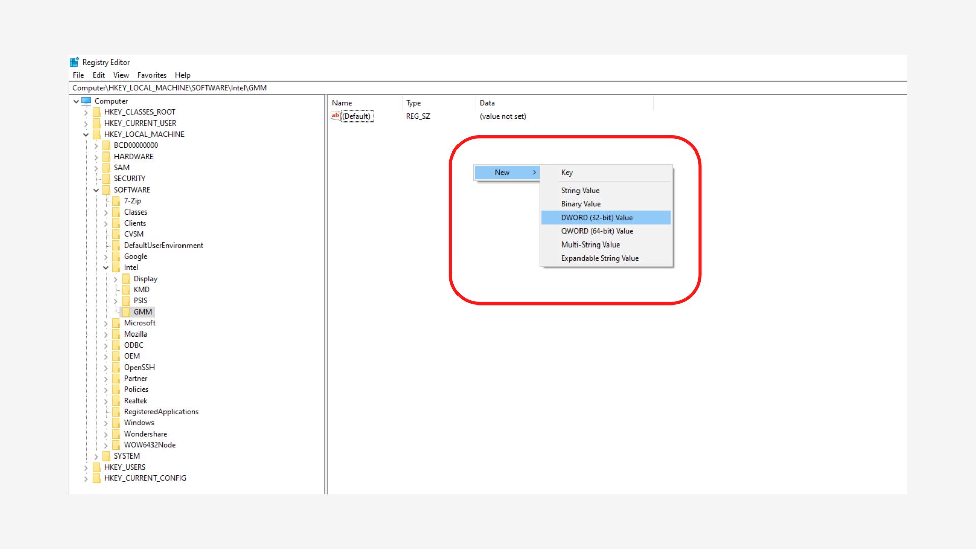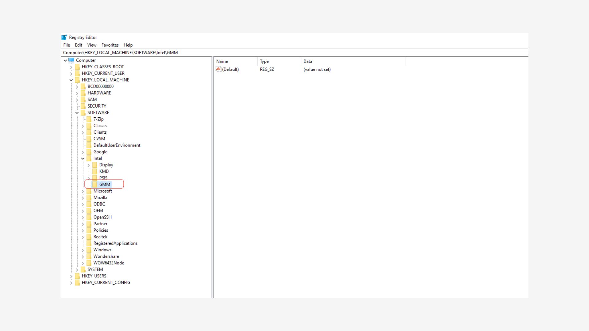 Далее в редакторе нужно создать раздел «GMM» в нижеприведенной ветке: