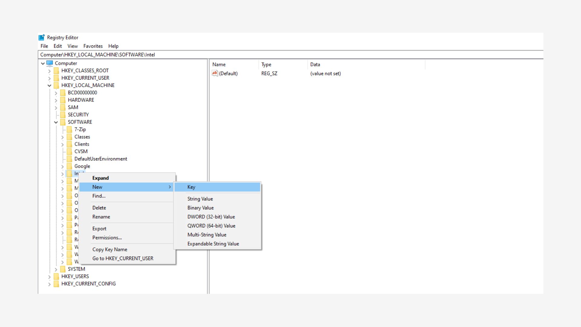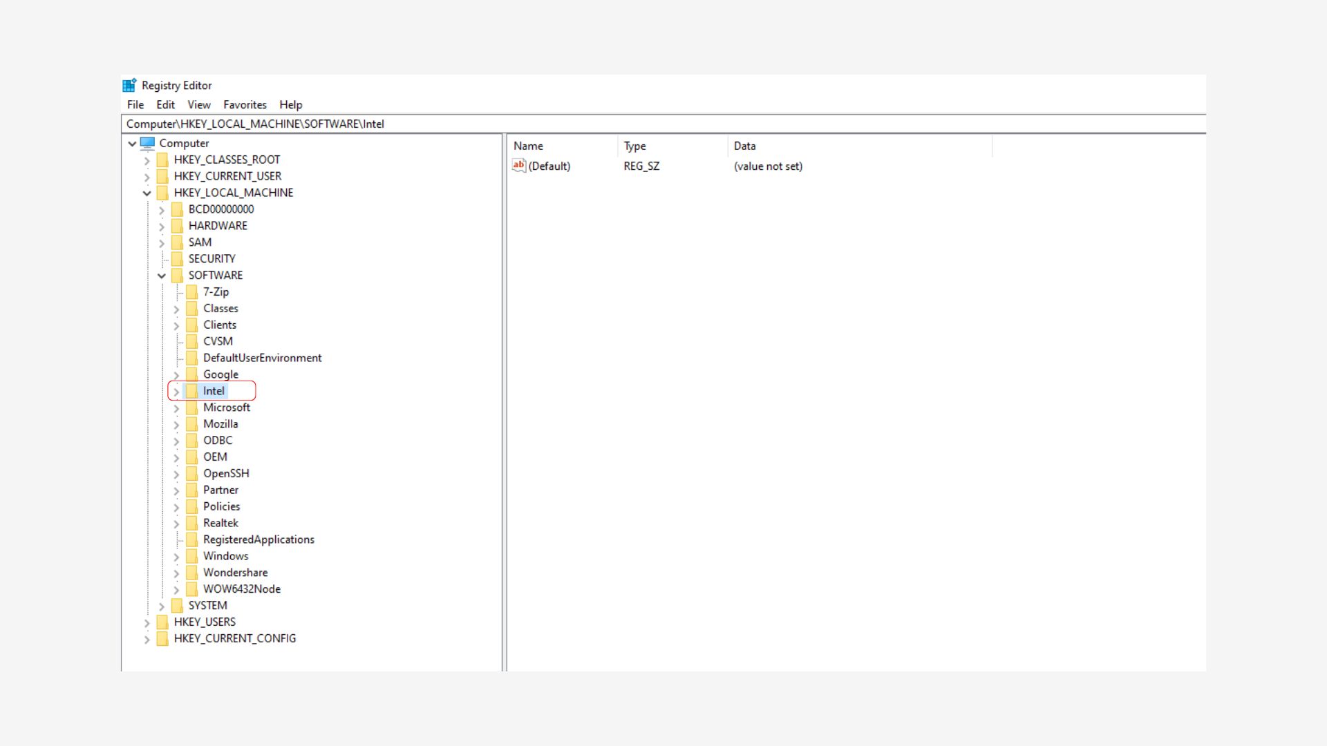 Идем по пути: HKEY_LOCAL_MASHINE — Software — Intel