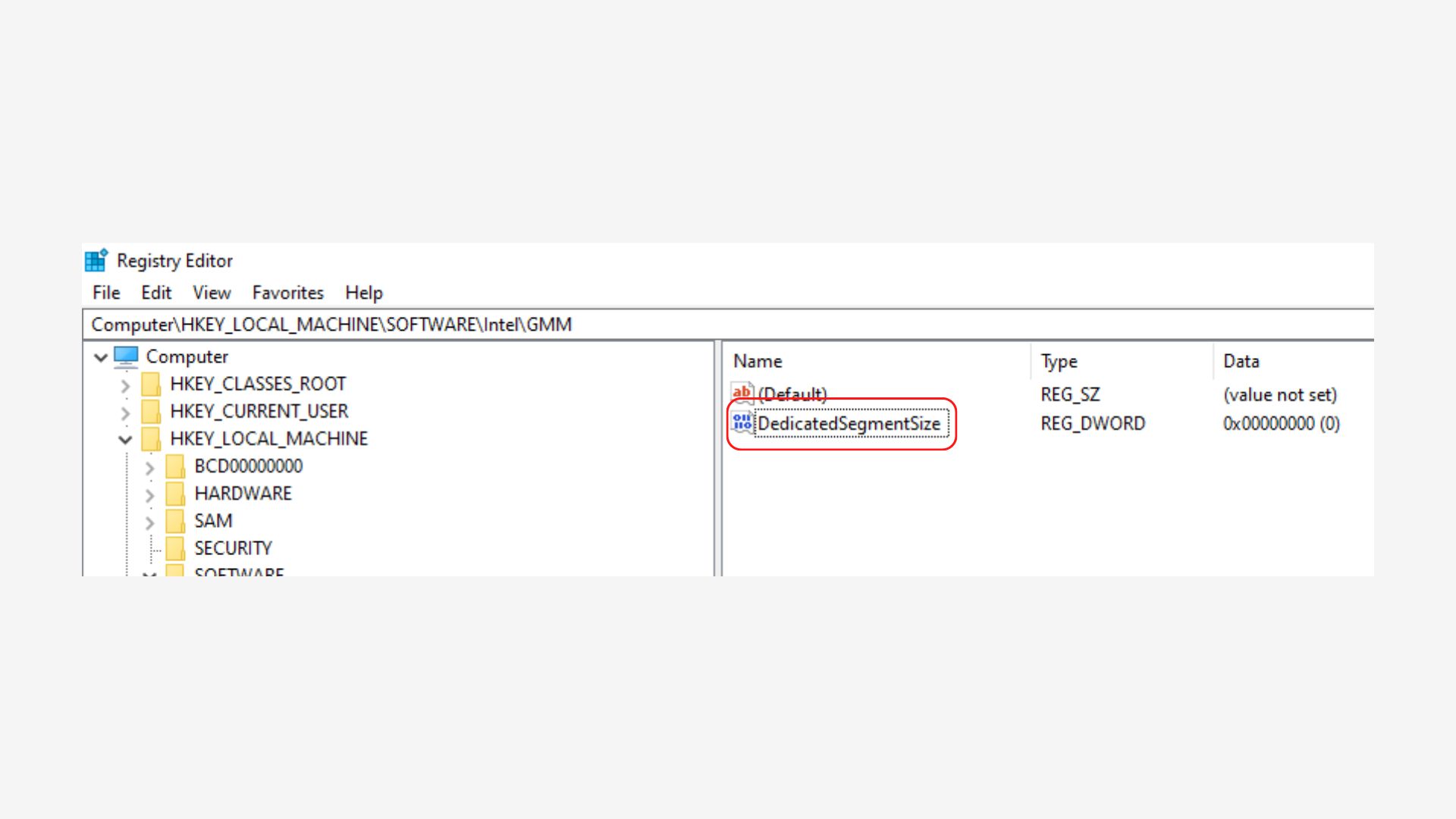 После, в разделе «GMM» создать строковый параметр с именем «DedicatedSegmentSize» (без кавычек).