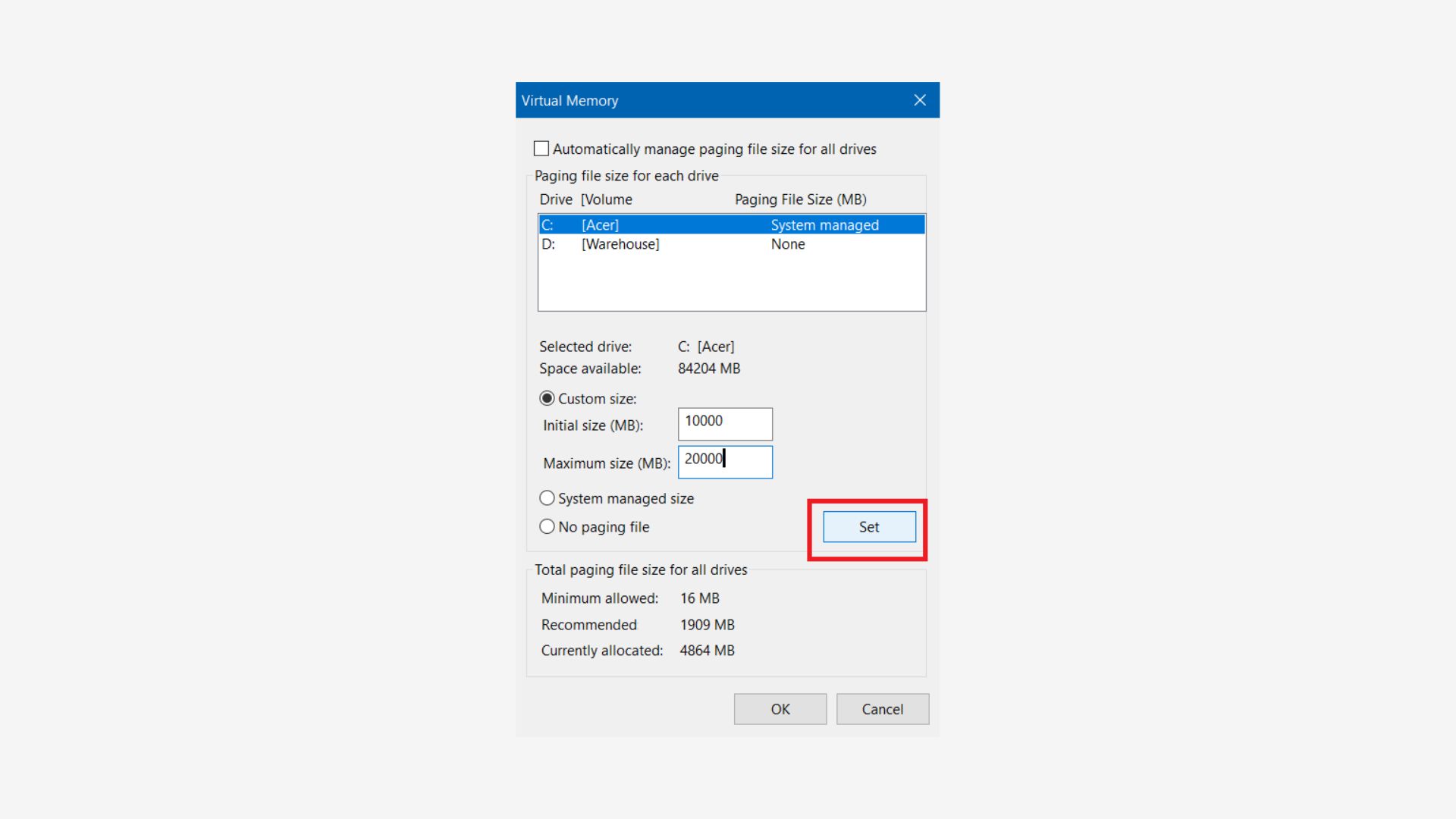 То есть, если у вас, к примеру 16 Гб ОЗУ, то пишите 2048.