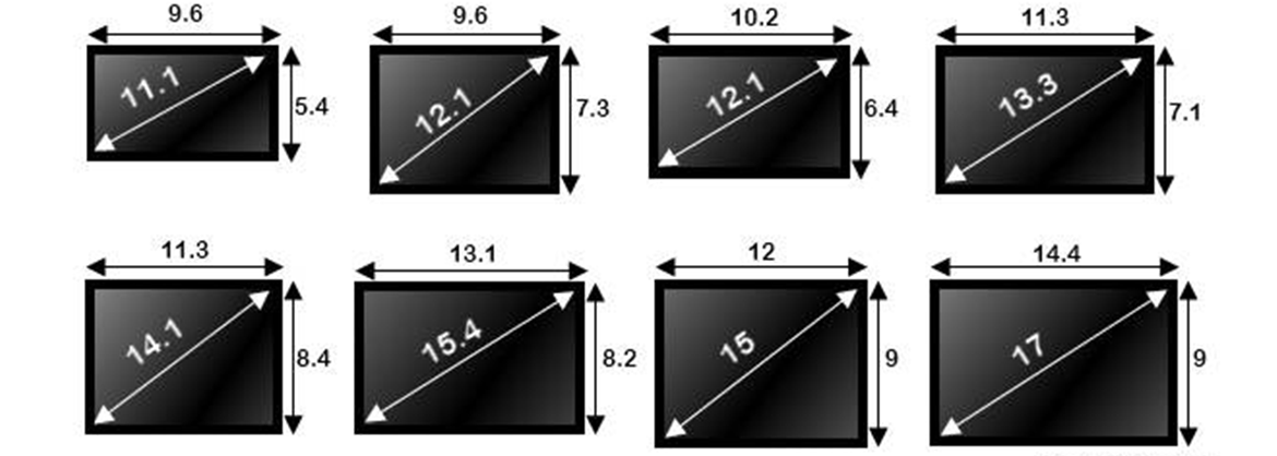 Ниже приведены наиболее распространенные диагонали ноутбуков: