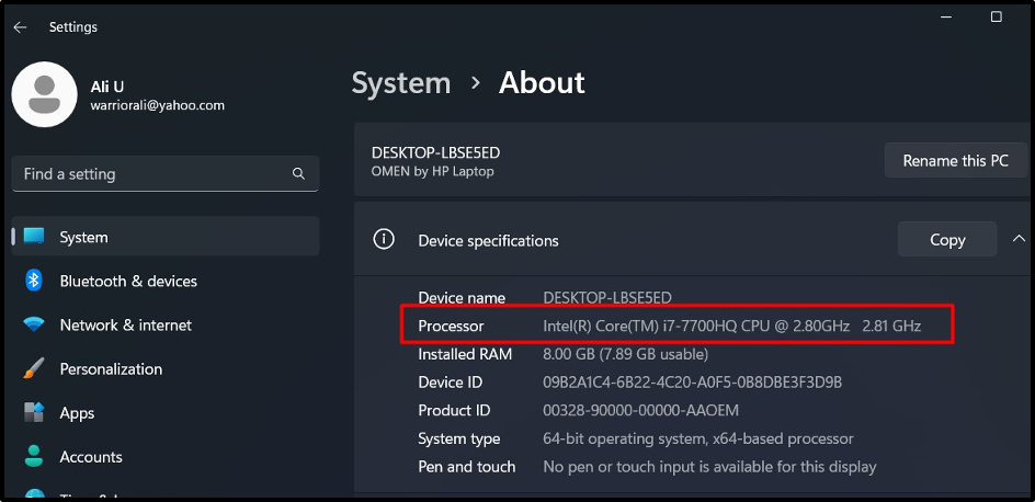Способ 1. Определите процессор Intel и его поколение в настройках системы.