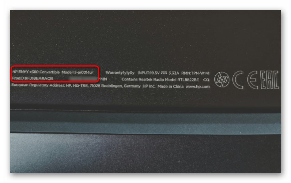Довольно часто исчерпывающую информацию можно получить, осмотрев заднюю крышку ноутбука. Современные лэптопы HP нужную информацию наносят на нижнюю часть устройства, как, например, на фотографии ниже.