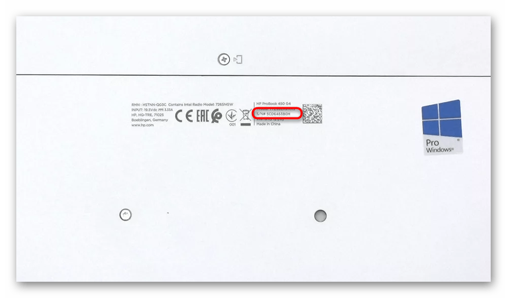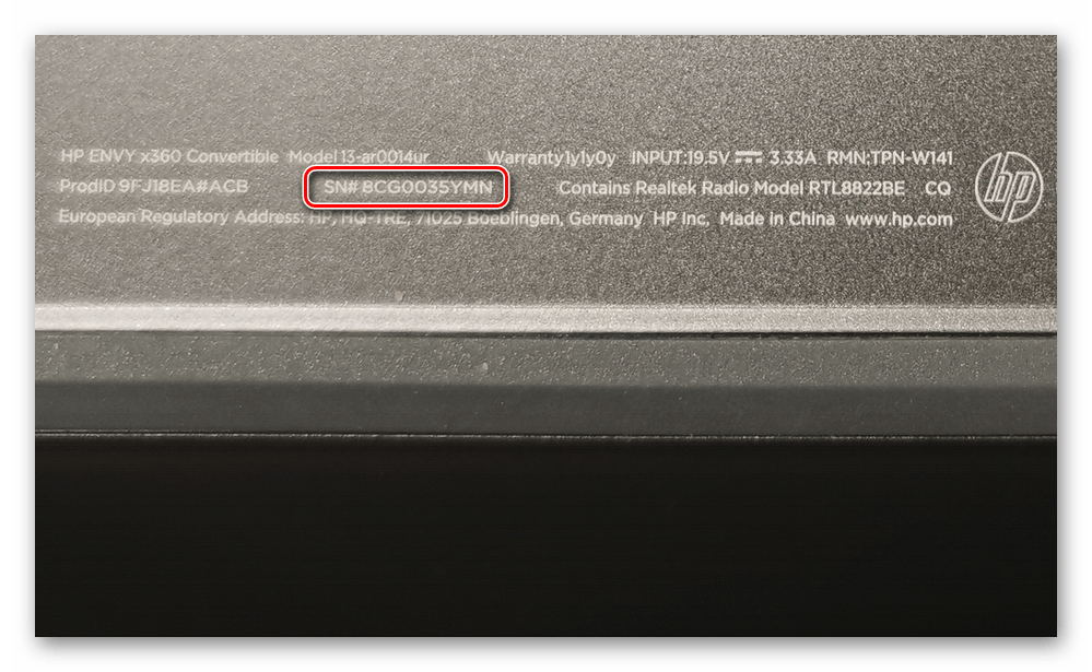 Несколько лет назад HP вместо этого клеили наклейки, расположенные рядом с наклейкой о лицензионной Windows, или прямо на ней. Название строчки либо такое же, либо «Serial number».